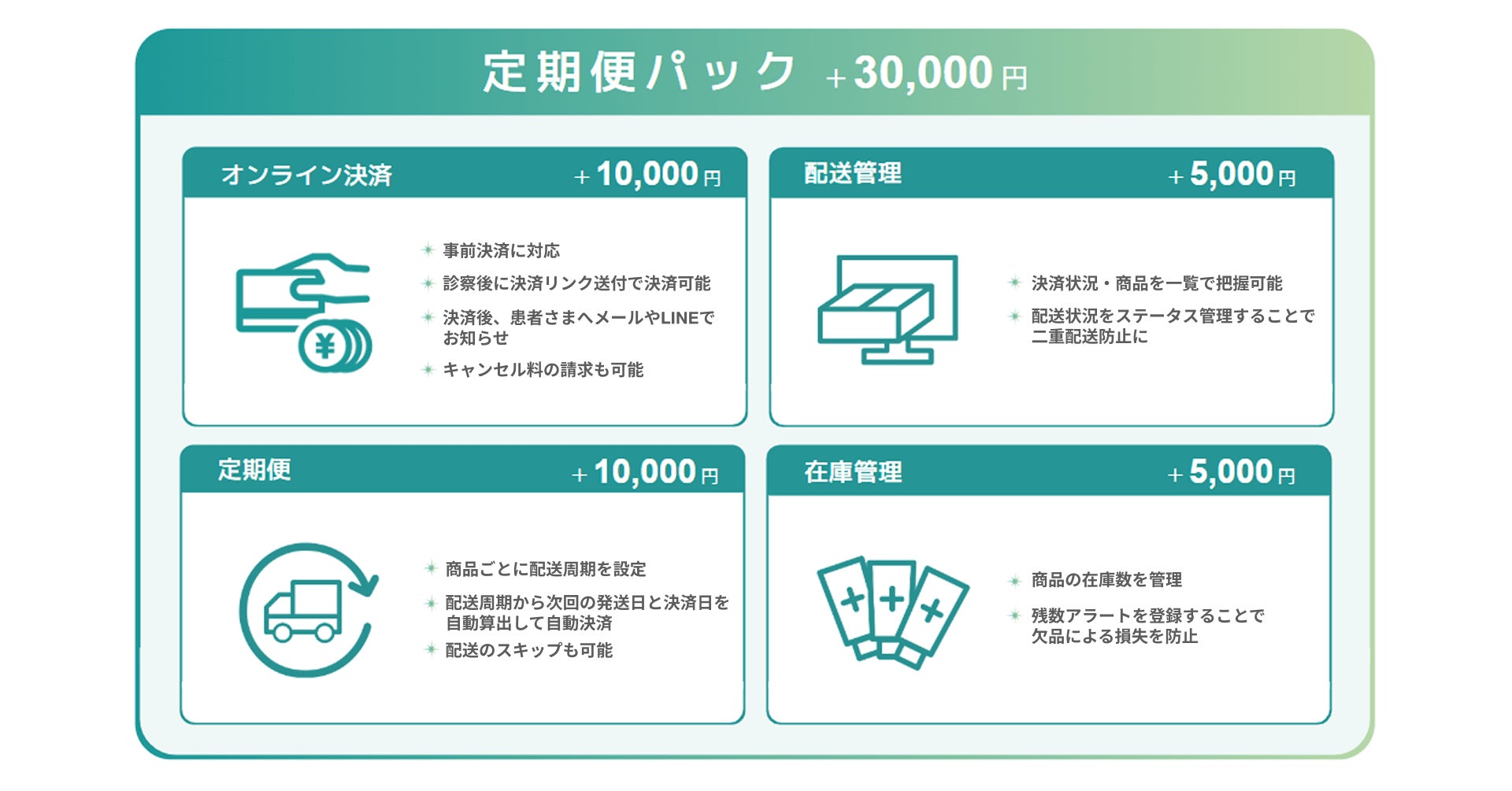 「オンライン診療機能」に「定期便機能」と「在庫管理機能」を追加
