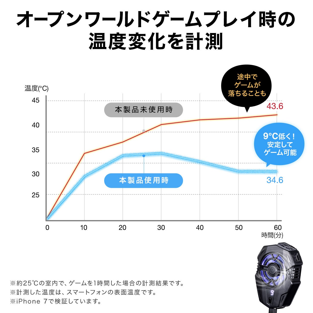 ●スマホが熱くなると性能が低下したり、バッテリーの劣化、故障の原因となります。そんな時、スマホクーラーを使用する事でスマホの性能を発揮し、バッテリーを保護することができます。