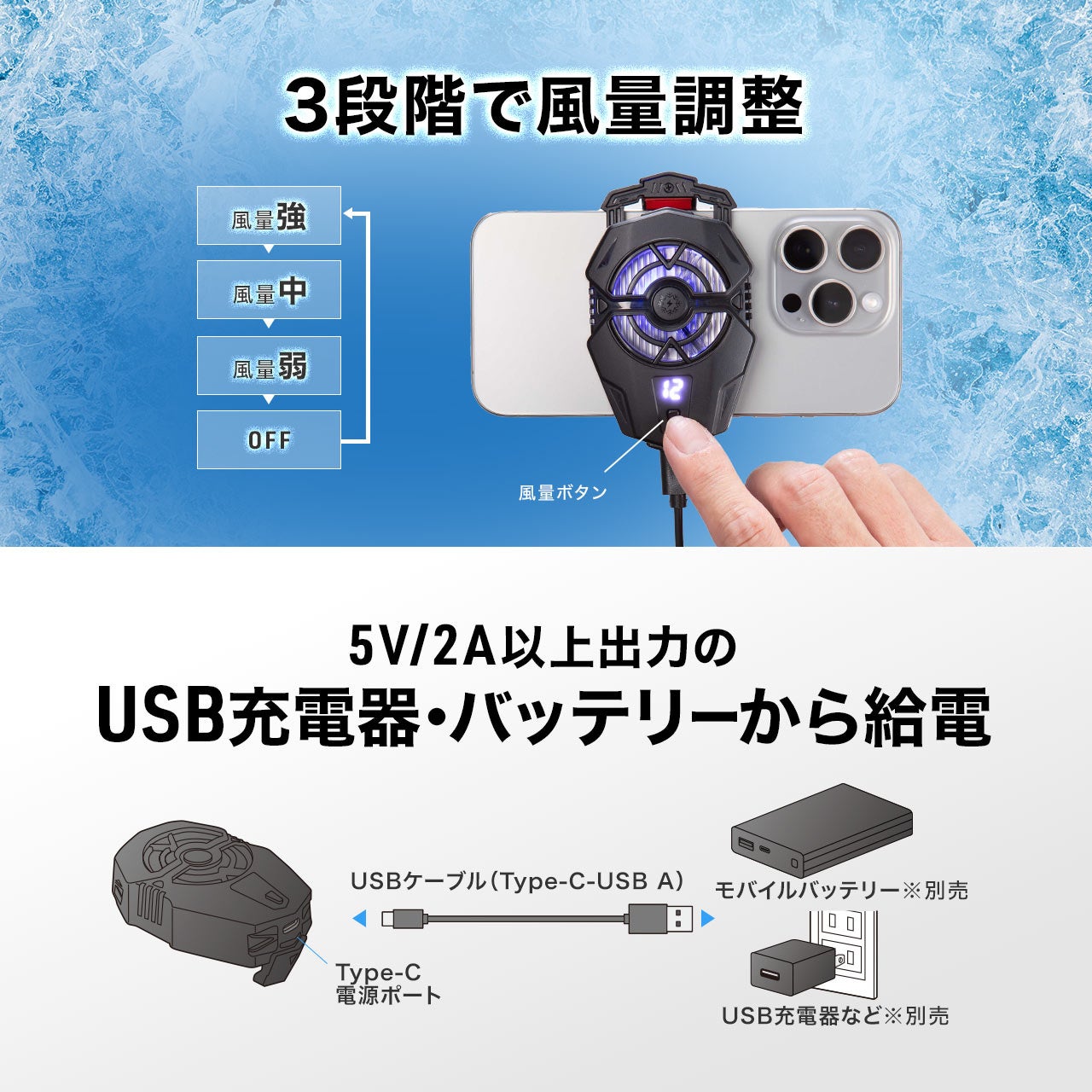 スマホクーラー スタンダードモデル 7W出力 ペルチェ素子 クリップ固定 静音 冷却 コンパクト 軽量 冷却ファン USB Type-C給電 温度表示付き iPhone Android