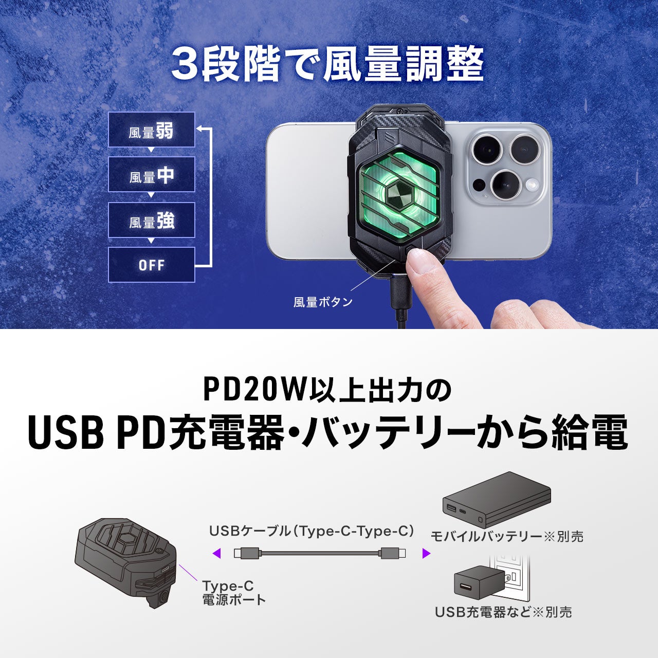 最強スマホクーラー ハイエンドモデル 19W出力 ペルチェ素子 クリップ固定 冷却 コンパクト 軽量 冷却ファン USB Type-C PD給電 三脚対応 iPhone Android