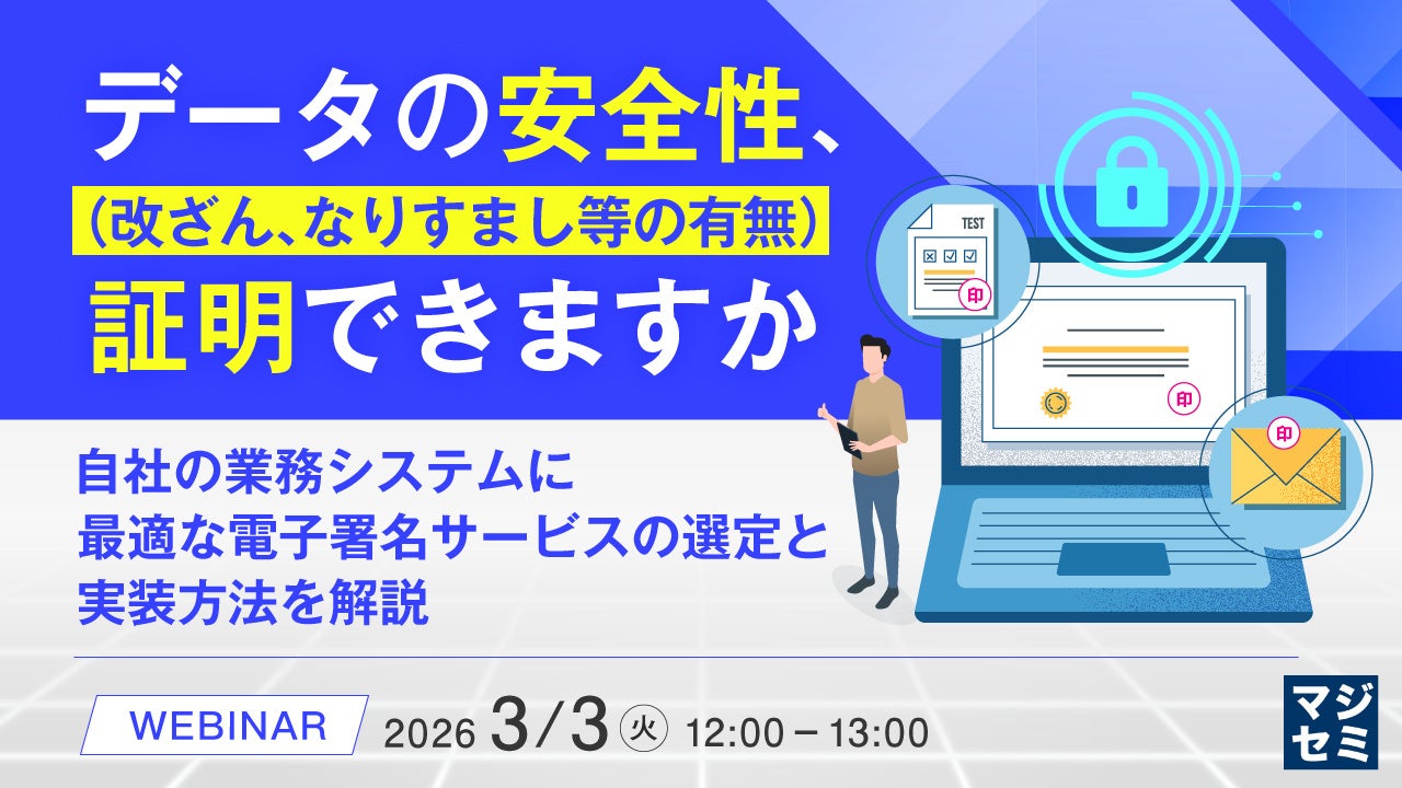 マジセミ株式会社は「データの安全性(改ざん、なりすまし等の有無)、証明できますか」というテーマのウェビナーを開催します。