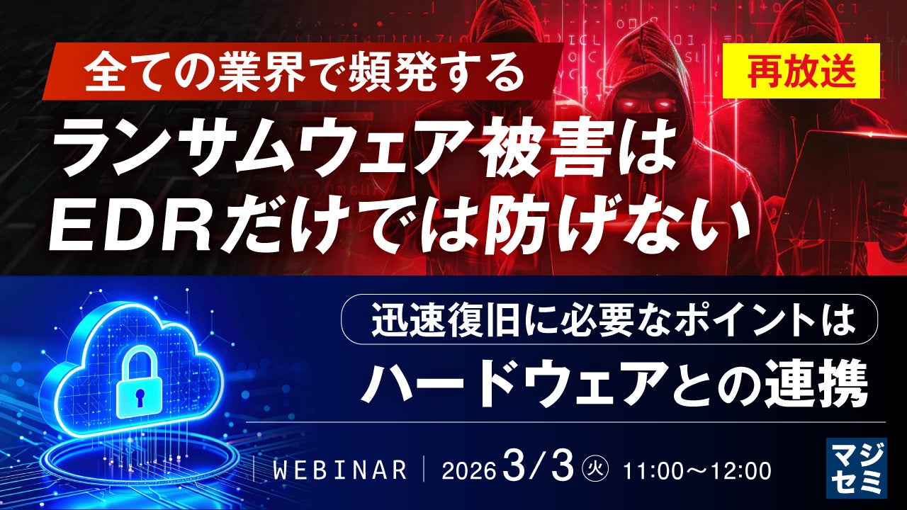 マジセミ株式会社は「【再放送】全ての業界で頻発するランサムウェア被害はEDRだけでは防げない」というテーマのウェビナーを開催します。