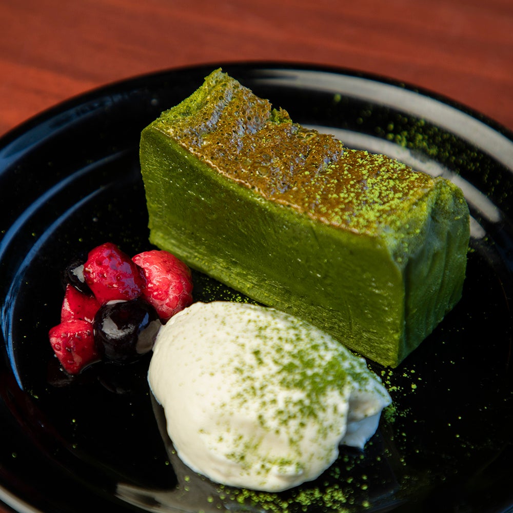 チョコレートテリーヌの中に抹茶をたっぷりと練り込んだ濃厚な味わいのデザート。珈琲にも紅茶にも、不思議と良く合います。