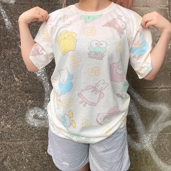 ▼【サンリオキャラクターズ】総柄スーパーBIG半袖Tシャツ M~XL展開 各 2,750円(税込)