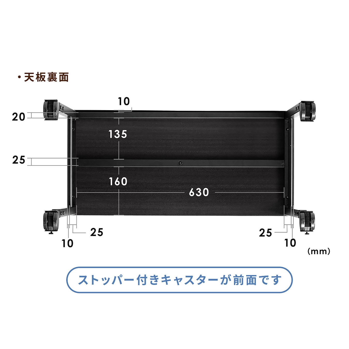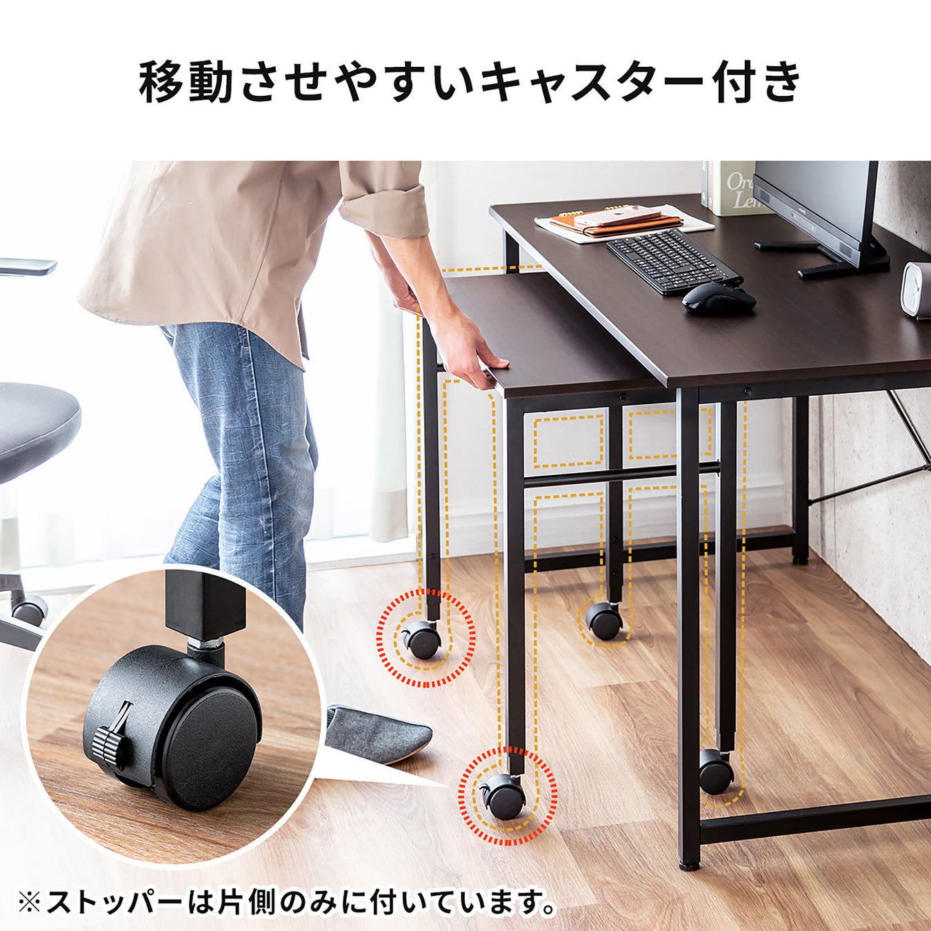 キャスター付きなので、楽にレイアウト変更が可能です。ストッパー付きキャスターを搭載しているため、移動と固定が自在にできます。デスクの横や手前に置くことで、L字デスクのように使用したり、デスクの手前や背面側に置くことで奥行きを拡張して使用可能です。