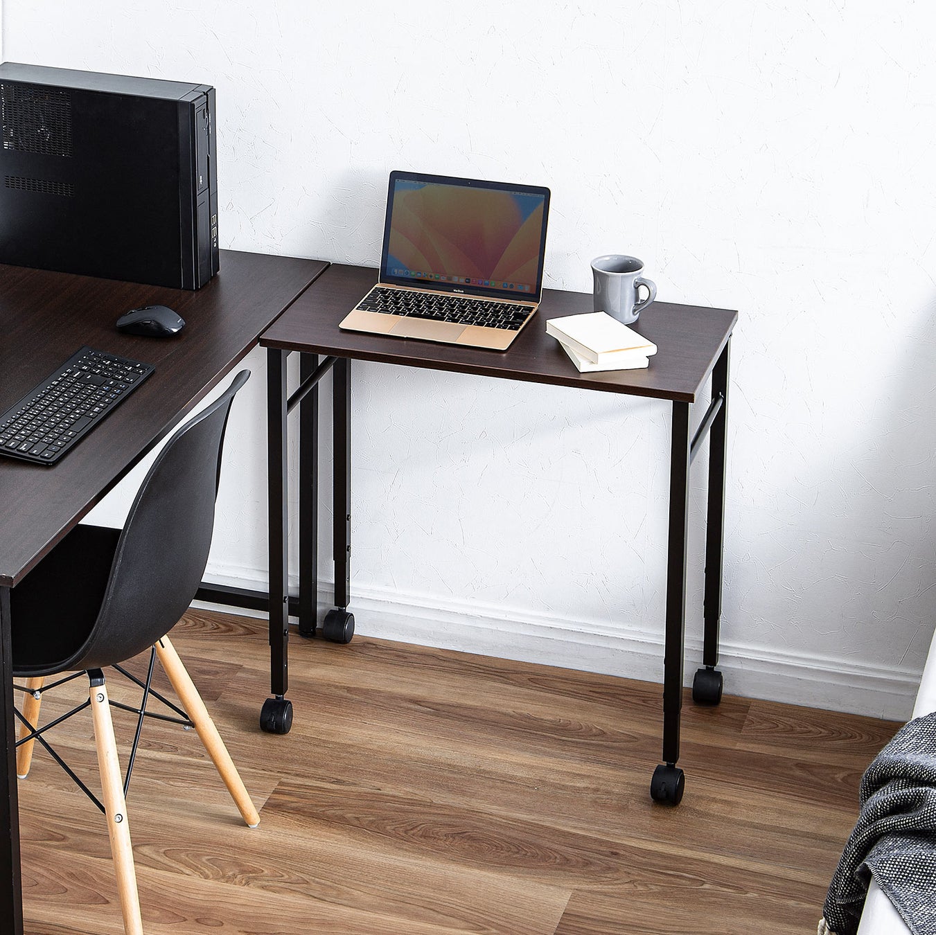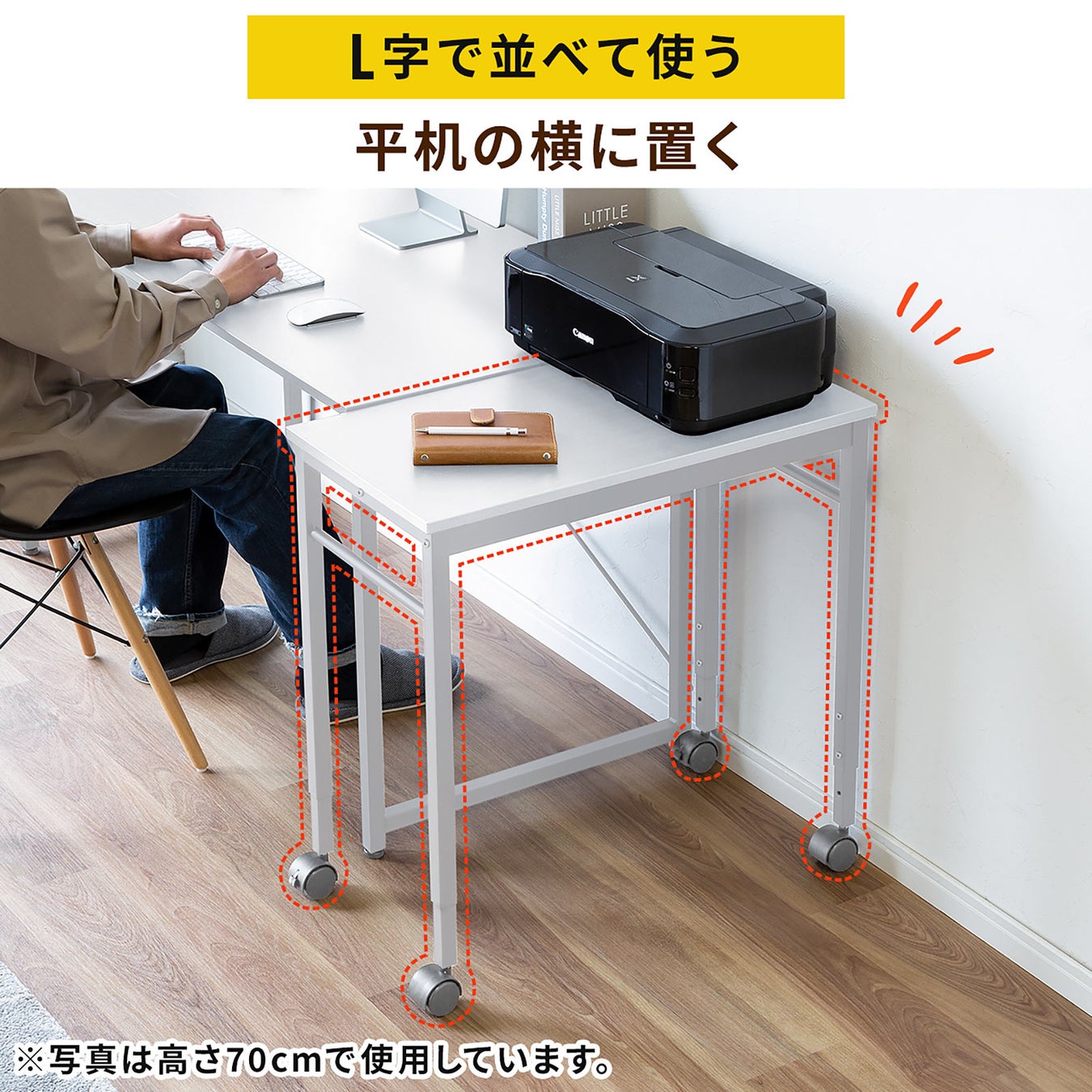 既存の平机を拡張して・L字デスクとして使用可能で高さ調節で既存のオフィスデスクやパソコンデスクの下にも収納できる幅70cm・奥行35cm・高さ64cm/70cmのキャスター付きサブデスク