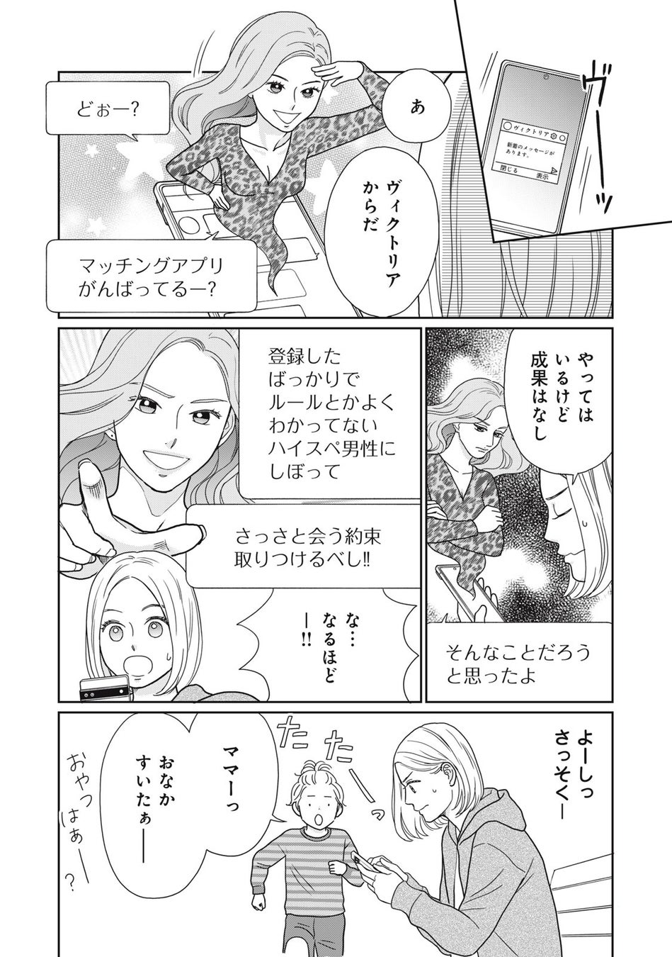 ・マッチングするたびに、「運命の出会い」だと期待しちゃうヒロインの明莉(42)。シンママだって、胸キュンはあきらめたくないんです!!