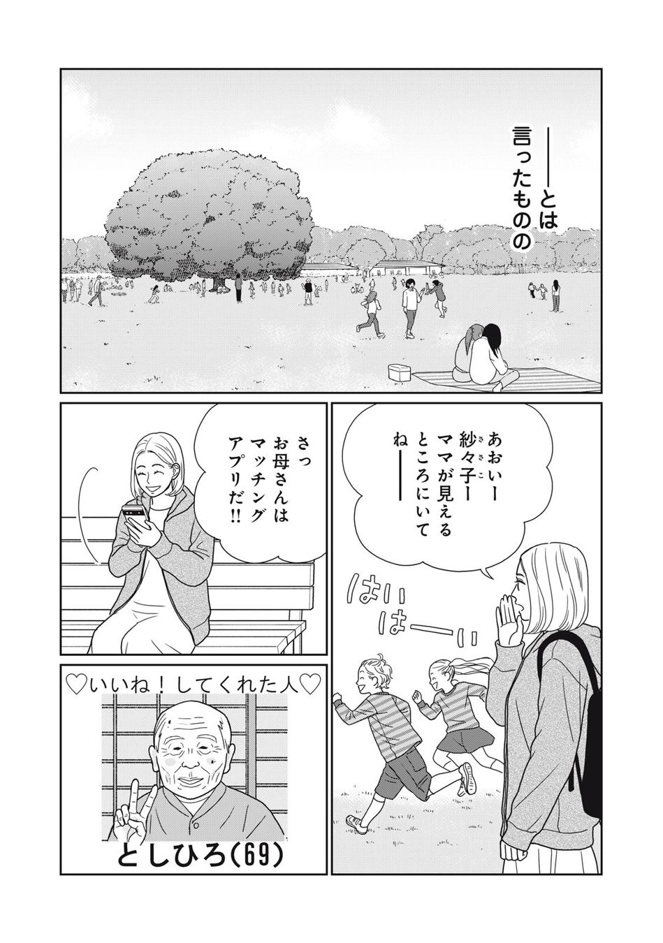 明莉(あかり)は42歳のシングルマザー。アプリに登録し再婚相手を探す毎日だが、「いいね」をくれるのは高齢の男性だけ…。そんなある日、近所の若くてイケメンなパパにときめいてしまう…が、「子どもをほったらかしでマッチングアプリですか」と言われ傷つく。だけど、マッチングした次の男性は高学歴の超イケメンで!? 絶対に幸せを見つけてみせる!! シングルマザーの胸キュン婚活ラブコメ!