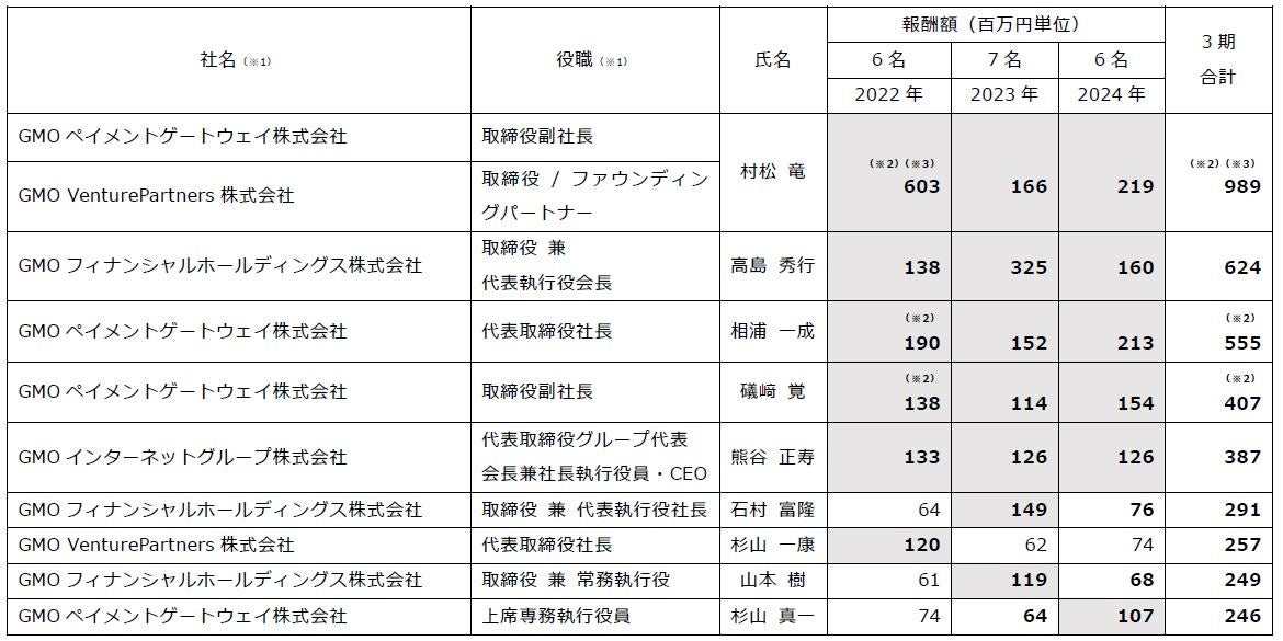 GMOインターネットグループ(グループ代表 熊谷正寿)は、2024年度の役員報酬額が1億円を超えるグループ取締役・執行役員が6名となりましたことをお知らせします。
