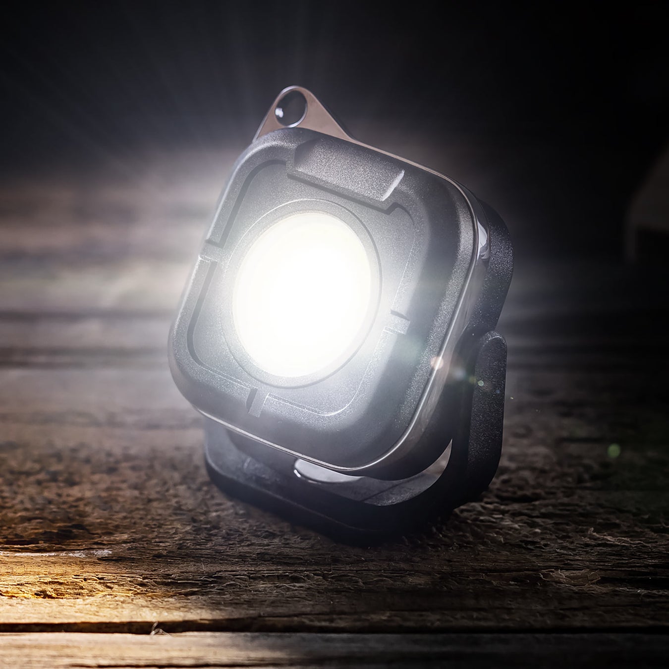 面発光COB LEDライトを搭載し、最大500ルーメンで一度に広範囲を照らします。夜間の作業や緊急時に頼りになる明るさを提供します。