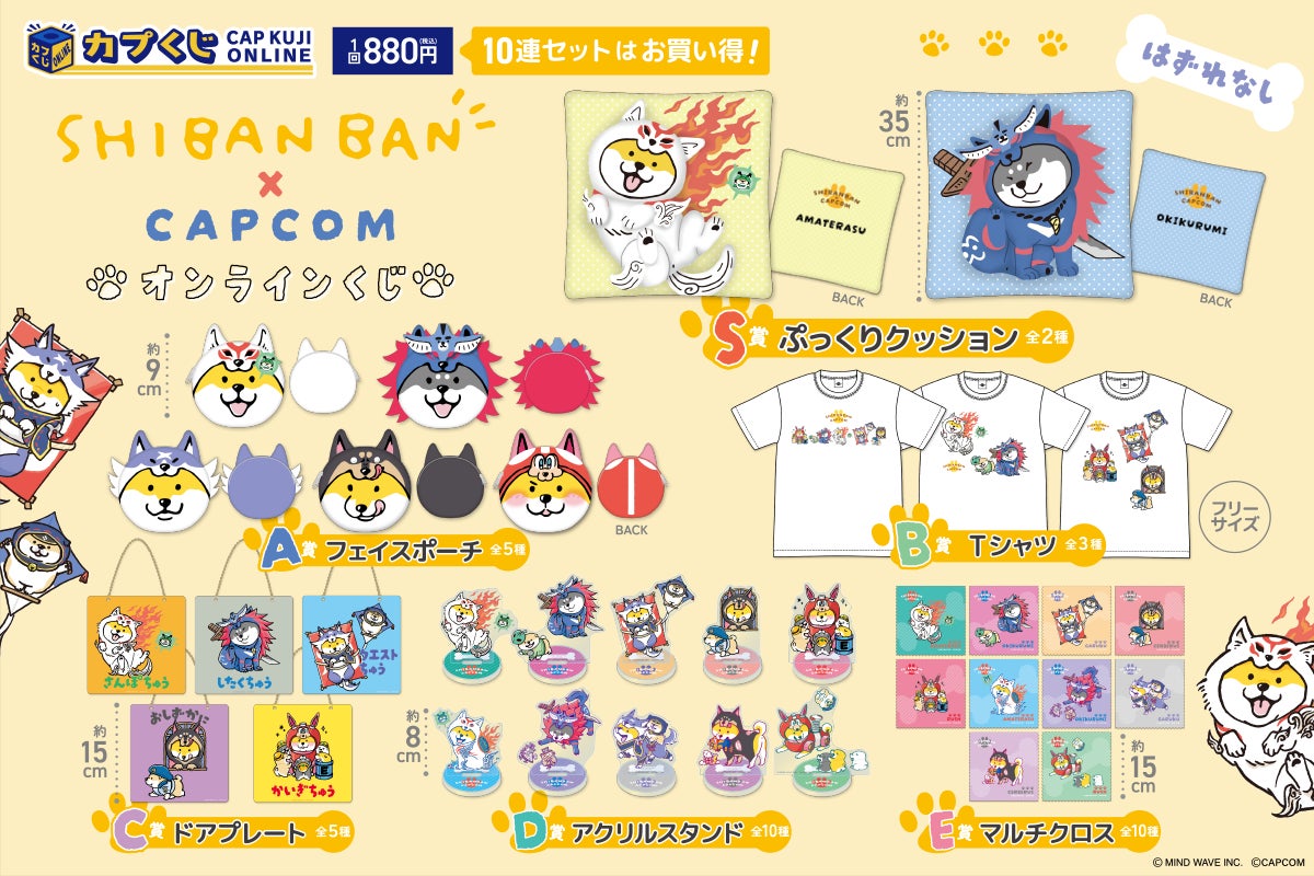 「しばんばん」の可愛らしいフォルムが立体化した「ぷっくりクッション(S賞)」といった特別なアイテムから各キャラクターの個性豊かな表情を楽しめる「フェイスポーチ(A賞)」、さらに日常生活のお供に最適な「ドアプレート(C賞)」や「マルチクロス(E賞)」まで、「しばんばん」・カプコン両ファン必見のワンダフルな商品ラインナップになっております。ぜひ愛らしいワンコたちを手に入れてください!