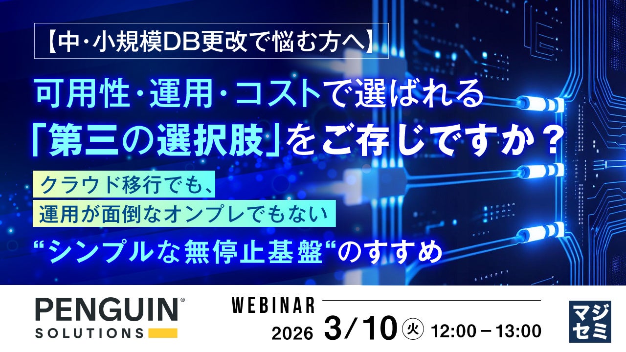 マジセミ株式会社は「【中・小規模DB更改で悩む方へ】可用性・運用・コストで選ばれる「第三の選択肢」をご存じですか? 」というテーマのウェビナーを開催します。