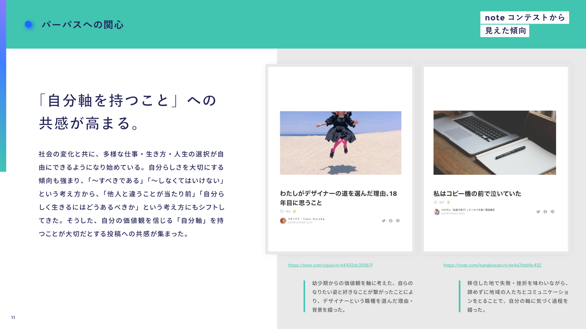 2. 抜粋したnote記事およびSNS投稿を、共感されている要素別に定性的に分析