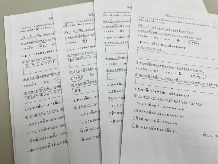 「あなたは作文を書くことが好きですか。」という質問で、「とても好き」「好き」と答えた人へは、その理由を自由記述で書いてもらうと、大きく次の3つに分類されました。