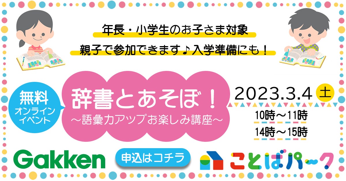 「辞書とあそぼ!~語彙力アップお楽しみ講座~」新学期も控えた3月に先取り準備!「ことばパーク」で特別オンラインイベントを開講します!