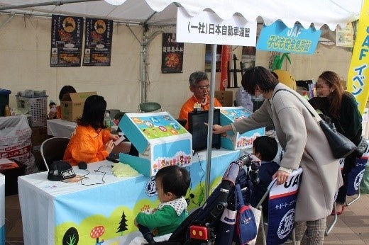 JAFブースでは、交通ルールをクイズで学び、その場で写真を撮って発行する「子ども安全免許証」で、小さなお子さまの交通安全に対する意識を高めます。また反応速度をゲーム感覚で測定し、俊敏性年齢が確認できる「俊敏性測定器」機材が体験できます。