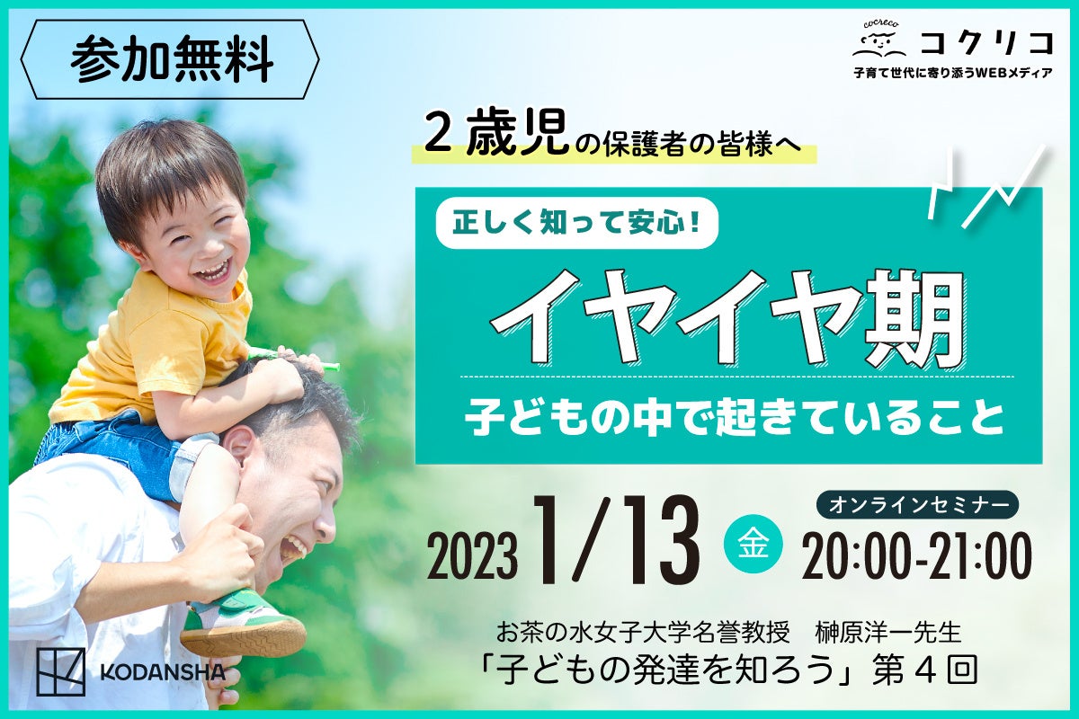 2023年1月13日(金)20~21時 、Zoomにて開催。「魔の2歳児」「イヤイヤ期」が心配なパパママ必見! 子どもの発達研究の第一人者・榊原洋一先生が寄せられたお悩みについて明快に解説します。