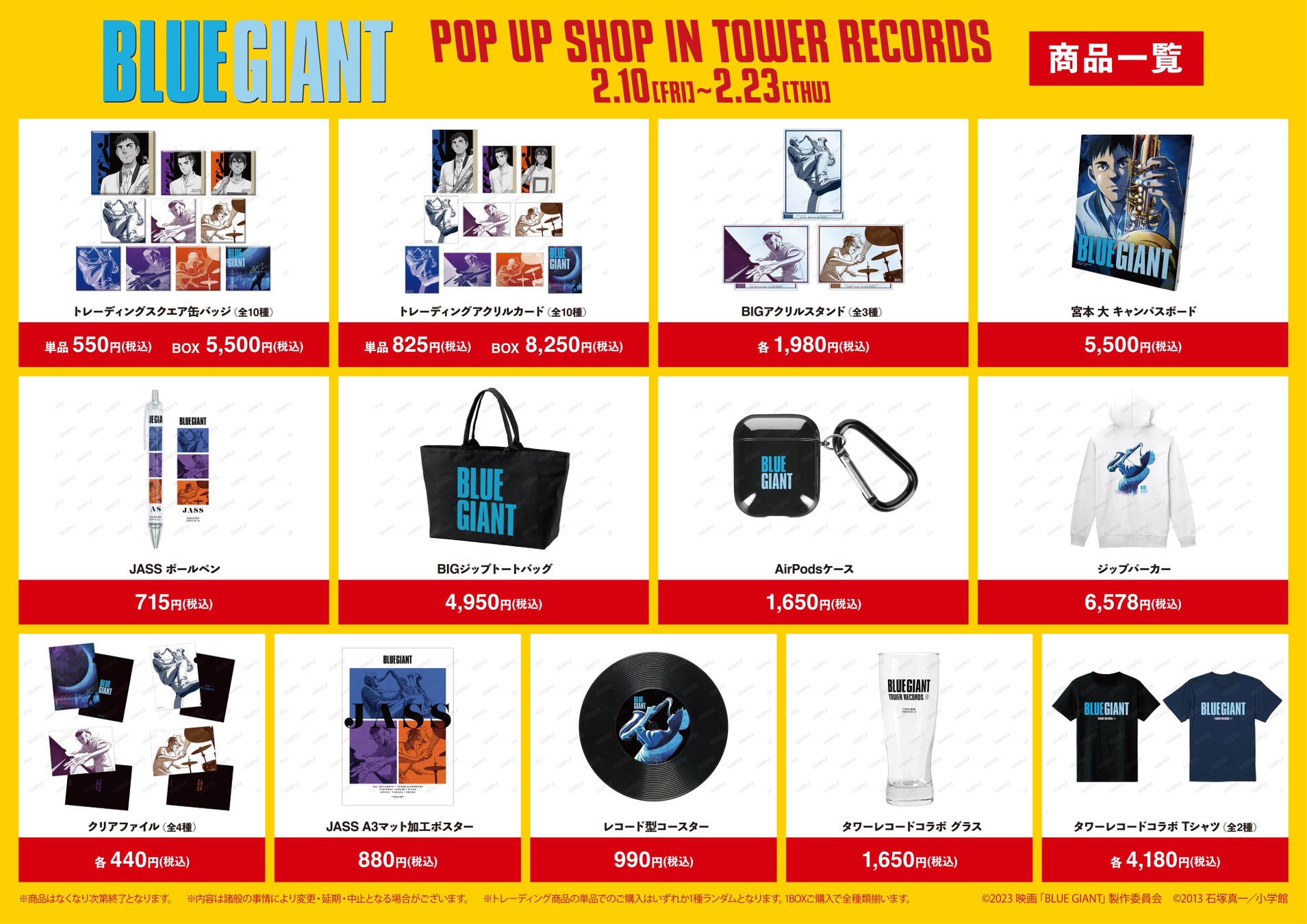 漫画・アニメのオリジナルグッズを販売する株式会社アルマビアンカはタワーレコード株式会社と共同で『映画「BLUE GIANT」 POP UP SHOP in TOWER RECORDS』を開催いたします!