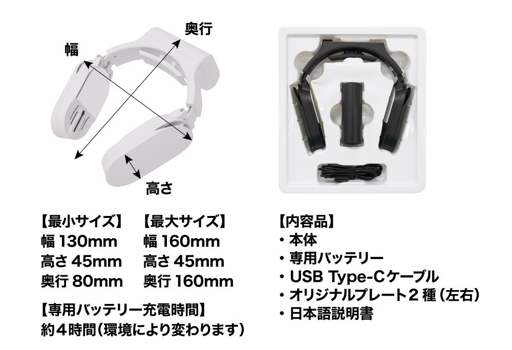 付属品:本体、専用バッテリー、USB Type-Cケーブル、オリジナルプレート2種、(左右)日本語説明書