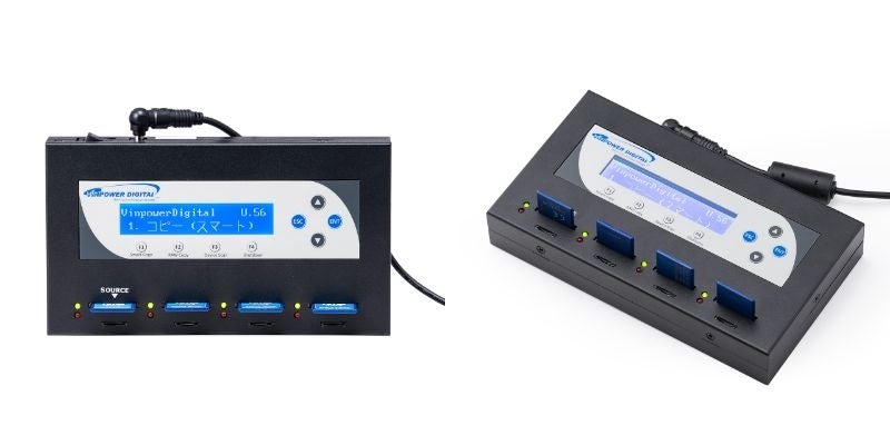 本製品は、パソコンなしでデータを大量コピーできるSD/microSDカードデュプリケーターです。
