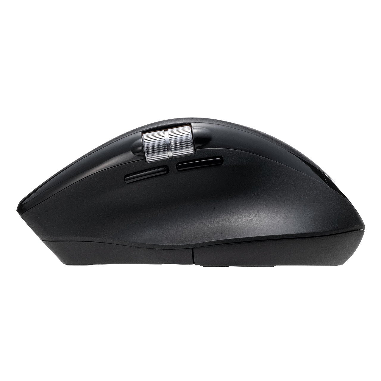 ワイヤレスマウス サイドホイール 高速スクロール Bluetooth 無線 静音 5ボタン ブルーLED マルチペアリング カウント切り替え 左右スクロール Mac対応 戻る 進む 充電式 ブラック