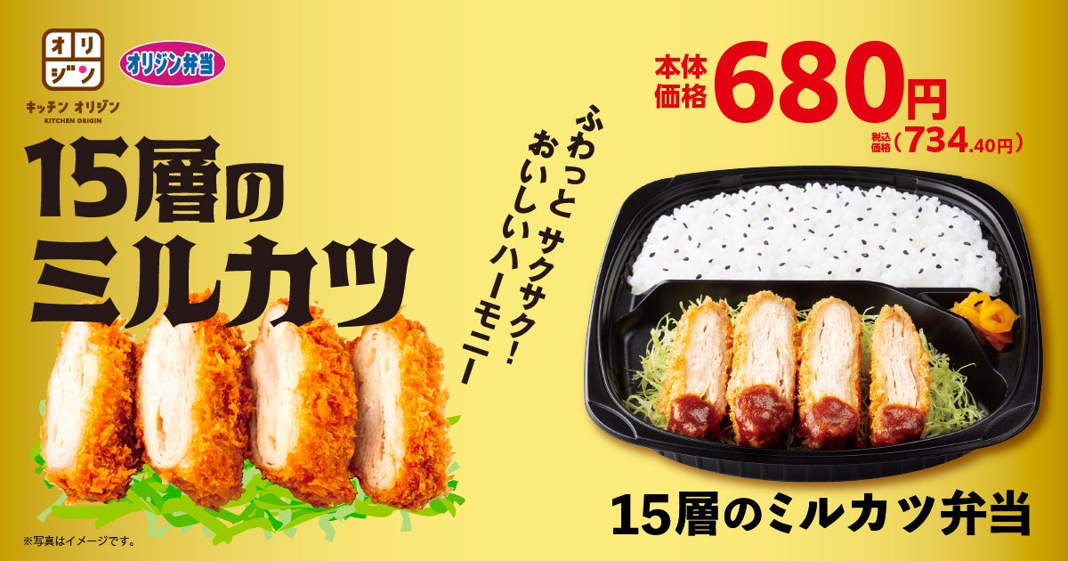 弁当・惣菜専門店「キッチンオリジン」「オリジン弁当」を展開しているイオングループのオリジン東秀株式会社(本社:東京都調布市/代表:後藤 雅之)は、1月6日(月)10時より、「15層のミルカツ弁当」を発売いたします。