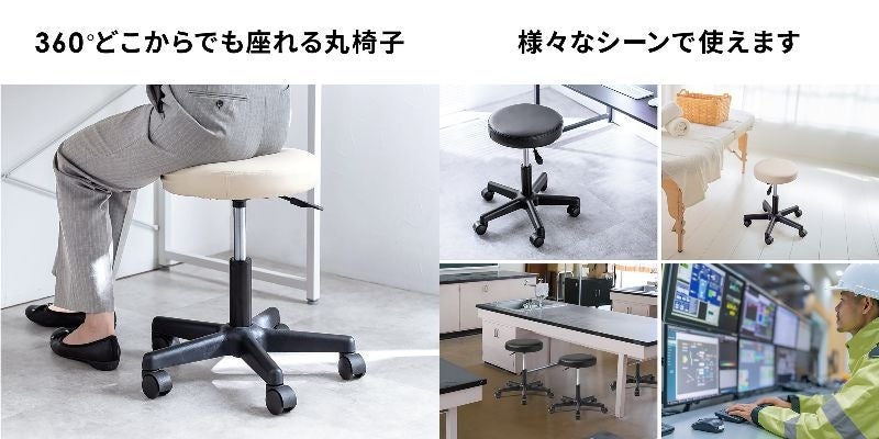 360°どこからでも座れる!ガス圧式で簡単に上下昇降できる「ちょっと掛け丸椅子」を6月27日発売