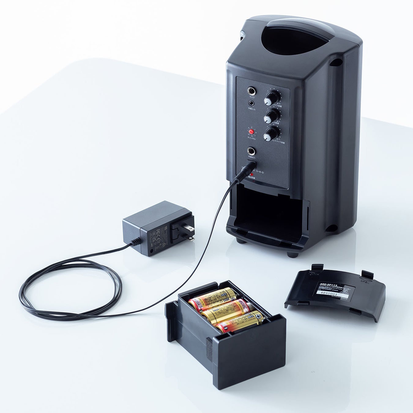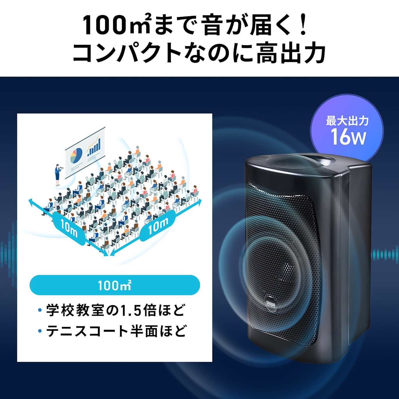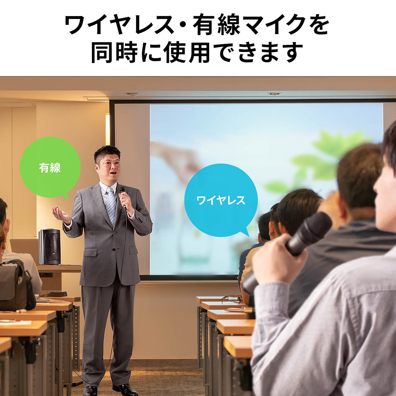 ワイヤレスマイク付 拡声器 スピーカー コンパクト 16W 有線マイク付 電池/コンセント対応 持ち運び