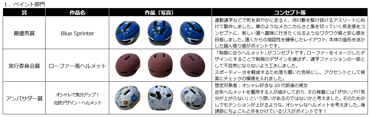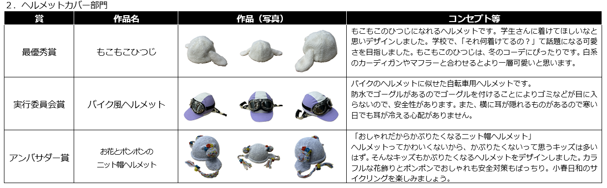 2.ヘルメットカバー部門(各作品については、下記で紹介)