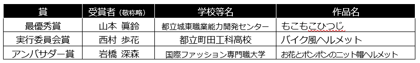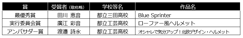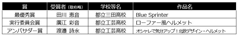 表彰式は、12月3日(日曜日)に開催された「GRAND CYCLE TOKYO STADIUM FESTA」にて、デザインしたヘルメットと全身コーディネートを提案するショーと併せて行われ、自転車利用時にかぶりたくなるヘルメットがお披露目されました。
