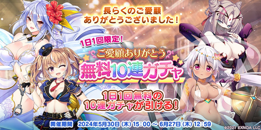 毎日引ける無料10連ガチャを開催いたします。この機会をお見逃しなく!