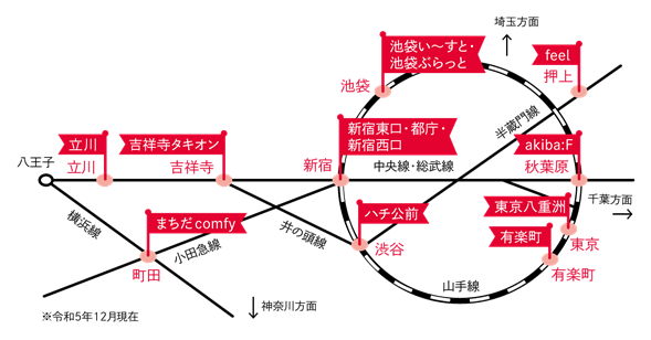 ・都内13か所の常設の献血ルーム(下記マップ参照)、献血バス等で献血できます。
