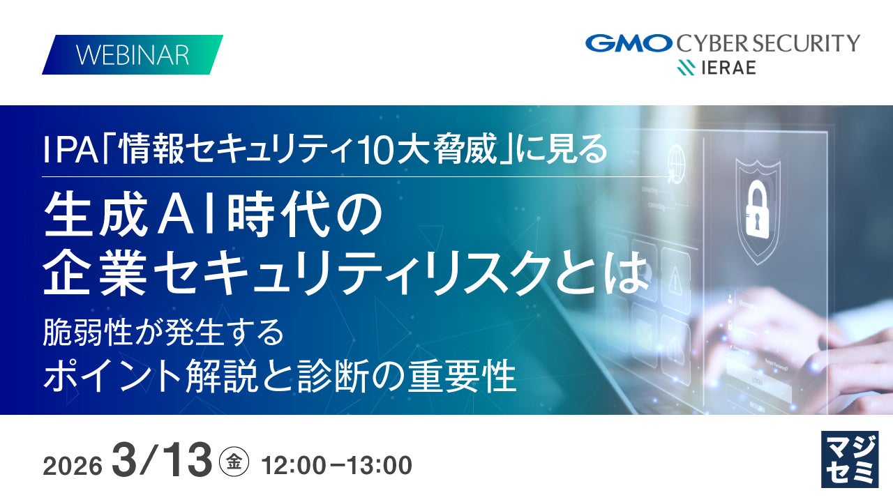 マジセミ株式会社は「IPA「情報セキュリティ10大脅威」に見る 生成AI時代の企業セキュリティリスクとは」というテーマのウェビナーを開催します。