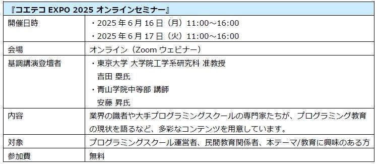 【~未来のプログラミングを共創する~民間プログラミング教育展示会『コエテコEXPO 2025』】
