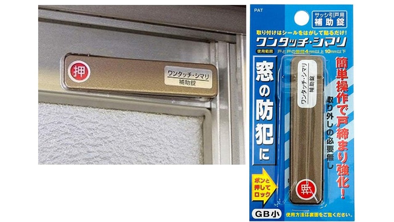 シールをはがして貼るだけでサッシ・引戸の戸締り強化ができるアイテムです。ポンと押してロックするだけの簡単な操作で窓まわりの防犯ができます。