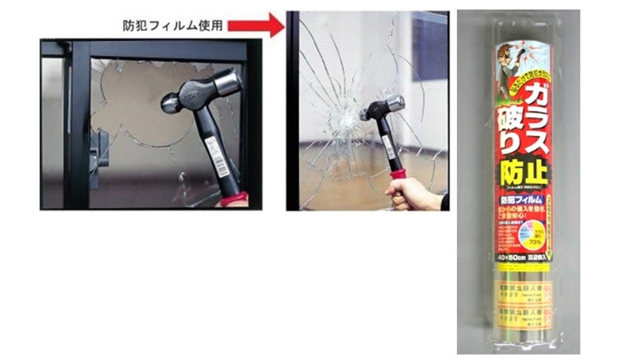 窓のカギ周辺のガラスを割って侵入されにくくする防犯フィルムです。窓に貼るだけで窓を簡単に破れにくくすることができ、外からの侵入対策におすすめです。