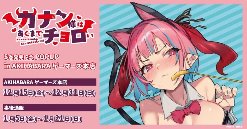 株式会社カードラボ ゲーマーズ(本社:東京都豊島区、https://www.gamers.co.jp/以下ゲーマーズ )は、2023年12月15日(金)より『カナン様はあくまでチョロい』5巻発売記念POPUPを開催することをお知らせいたします。