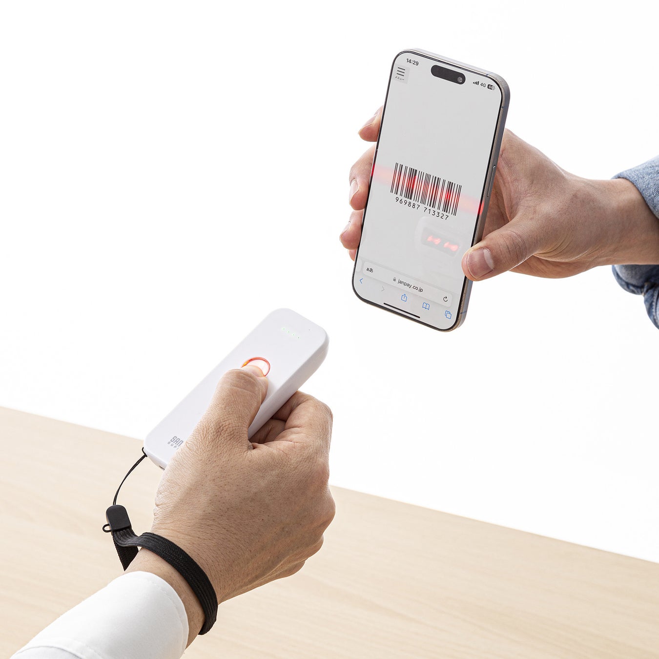 スマートフォンやパソコンの画面に表示されたバーコードの読み取りにも対応しています。