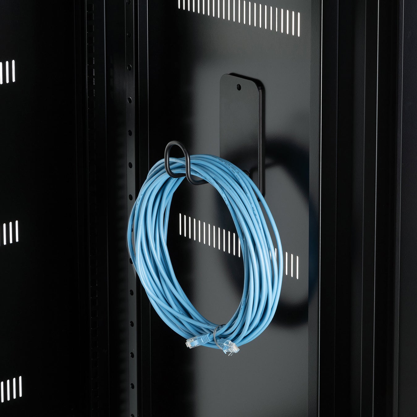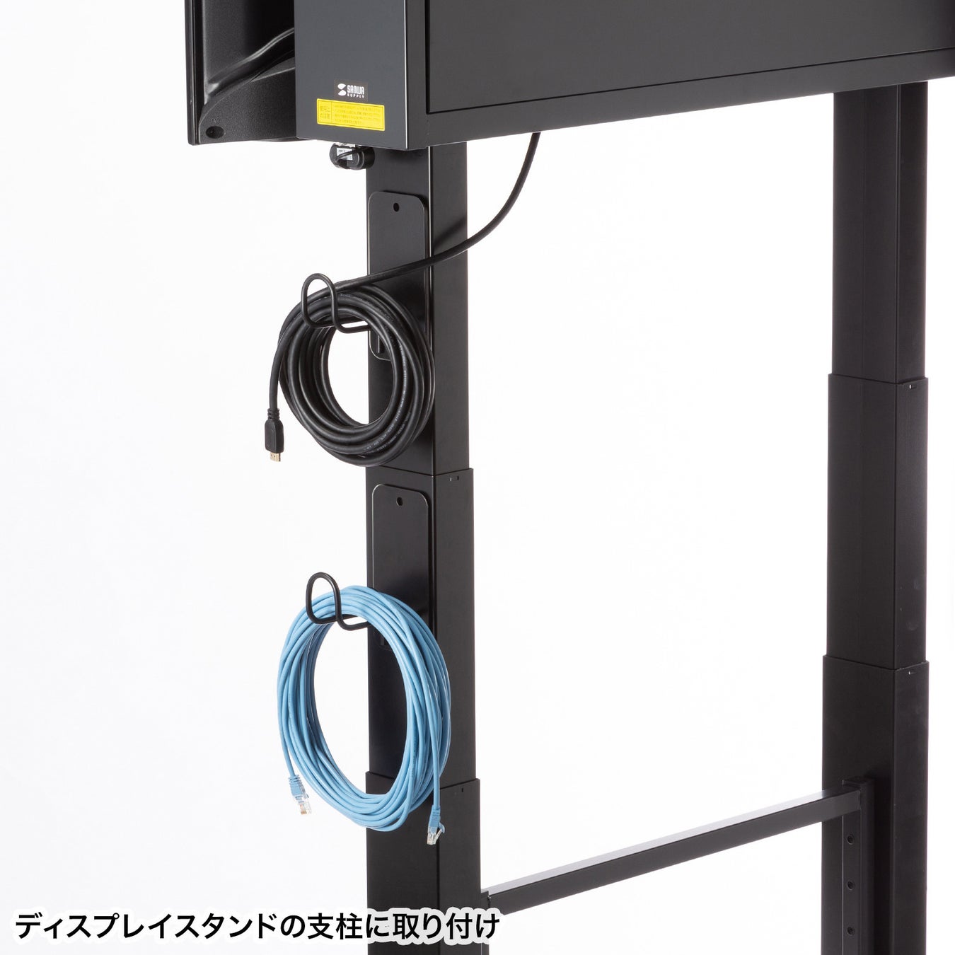 ケーブルが乱雑に配置されていると、機器の落下や転倒の恐れがあります。ケーブルフックを使用することで、ケーブルを床面から浮かせ、転倒などによる事故のリスクを減らすことができます。