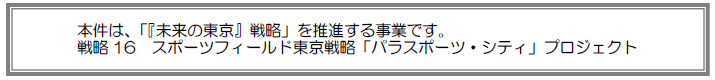東京都のパラスポーツ応援プロジェクト。スポーツをする人も、観る人も、支える人も、あらゆるメンバーが一つのチームとなってパラスポーツを盛り上げています。年間を通じて様々な取組を実施しています。詳細は、WEBサイト、SNS等で順次お知らせします。