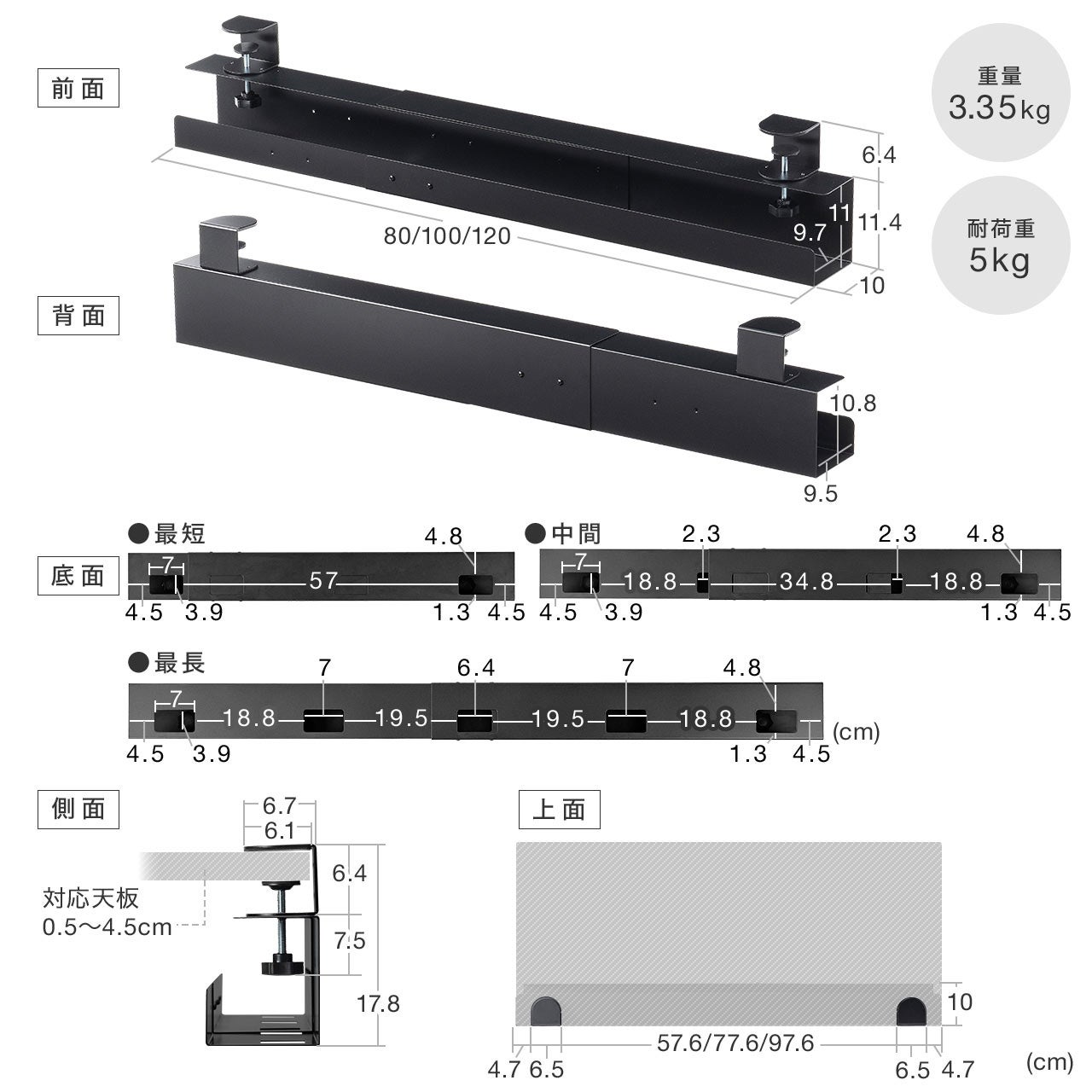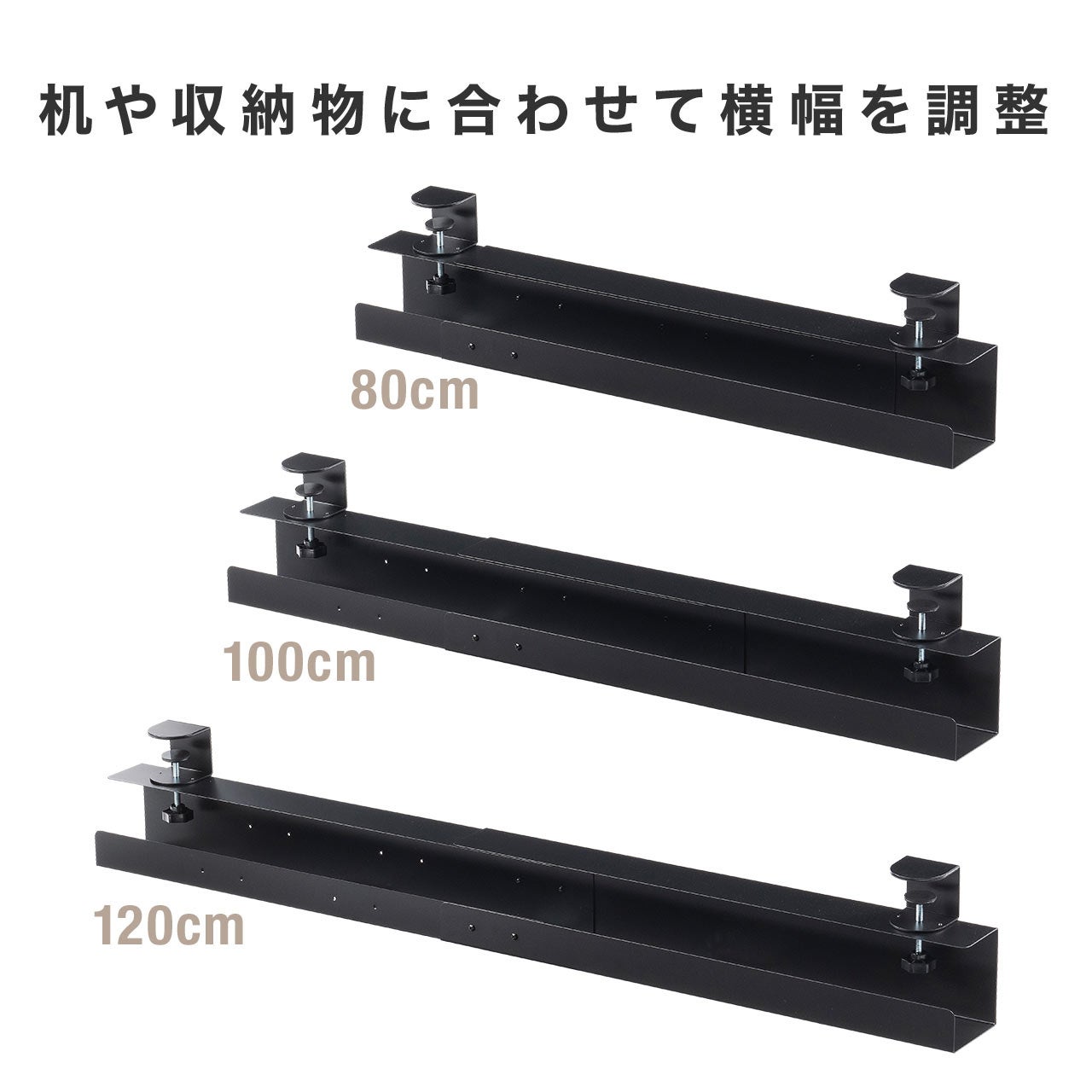 ケーブルトレー ケーブルオーガナイザー 幅80/100/120cm 横幅調整可クランプ固定 スチールタイプ