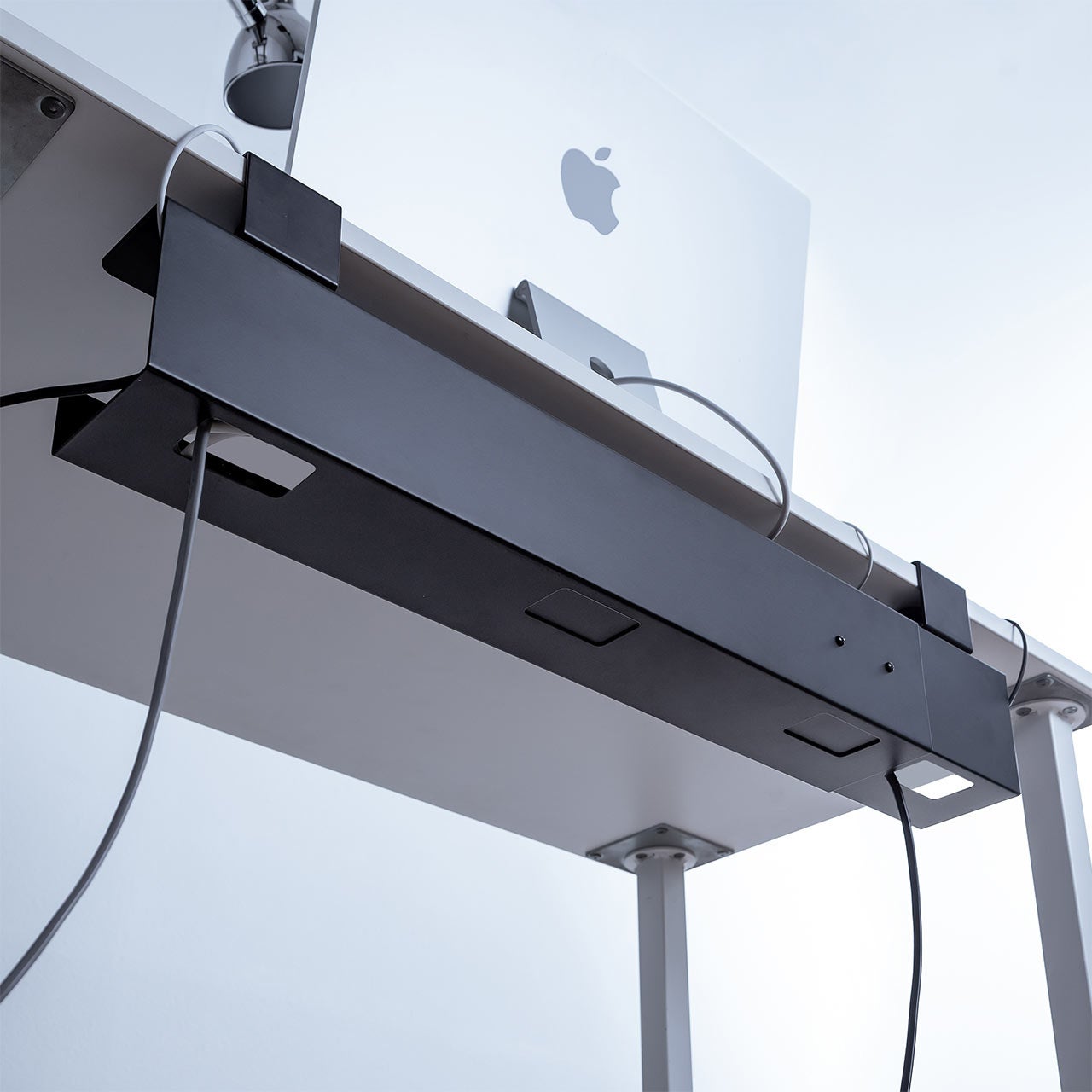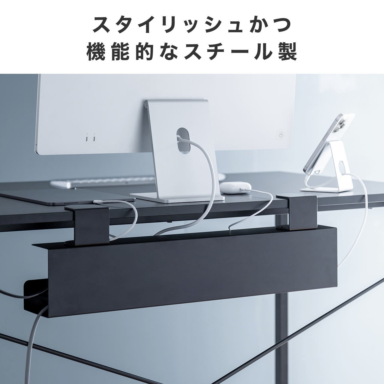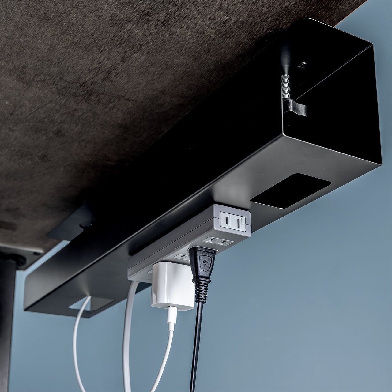 電源タップとケーブルを一緒に収納できるので、デスク下をすっきりと整頓できます。