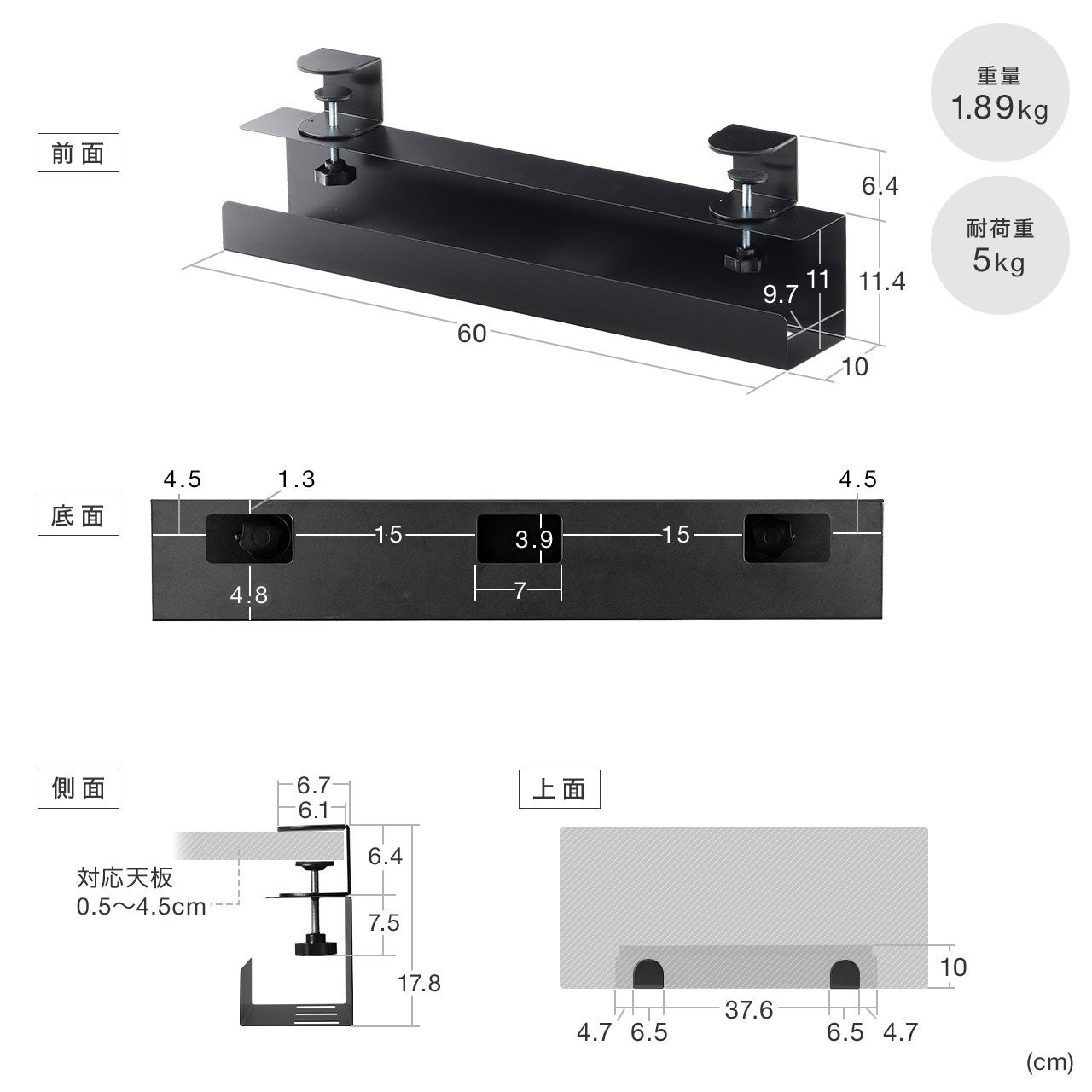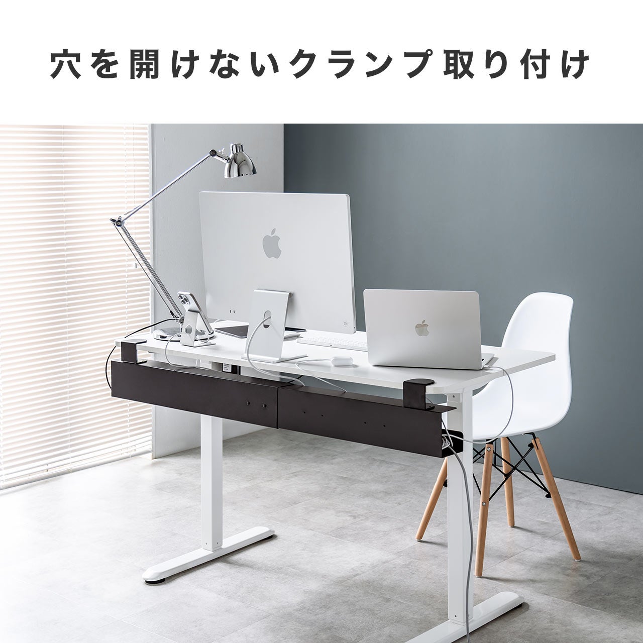 デスクに穴を開けずに簡単に取り付けたい方に最適なクランプ式のケーブルトレーです。