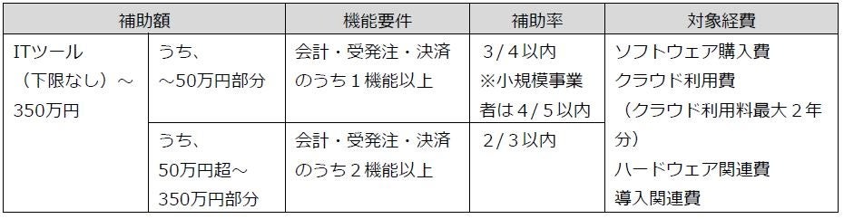 ソフトウェア購入費、クラウド利用費(クラウド利用料最大2年分)、導入関連費 |