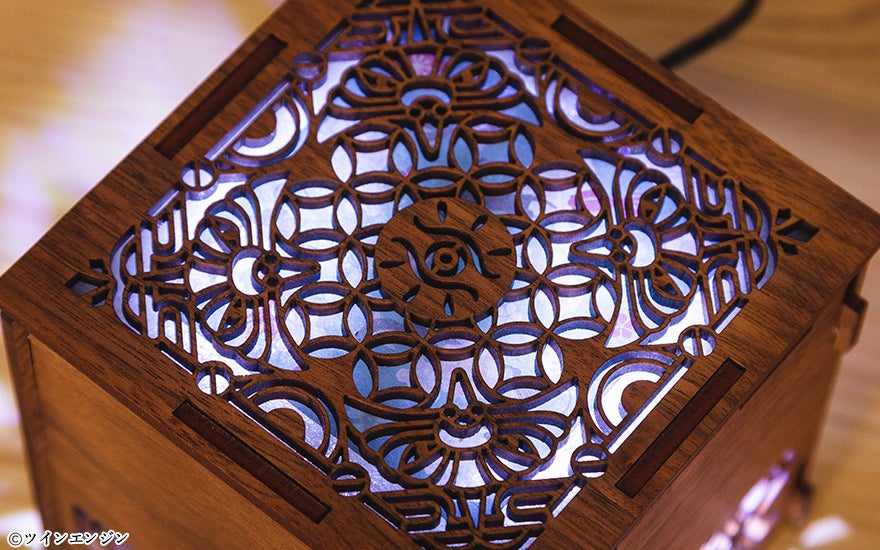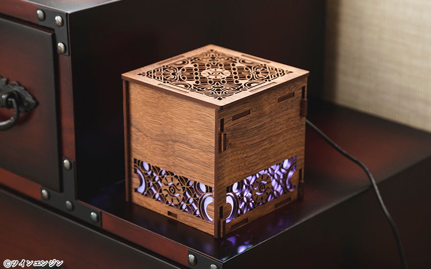 薬売りをイメージした、繊細な文様が刻まれた木製の空気清浄機。