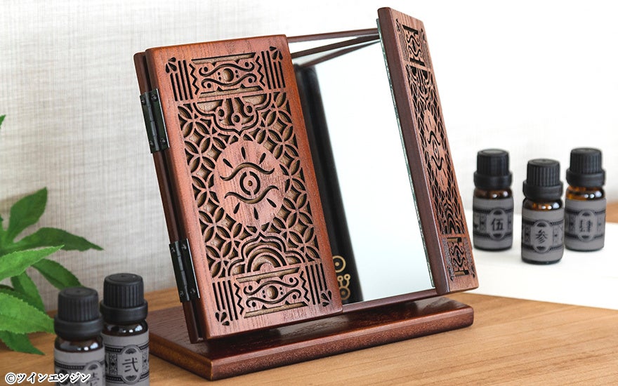 繊細な文様で彩られた、「ルームフレグランスセット」、「空気清浄機」、「三面鏡」。