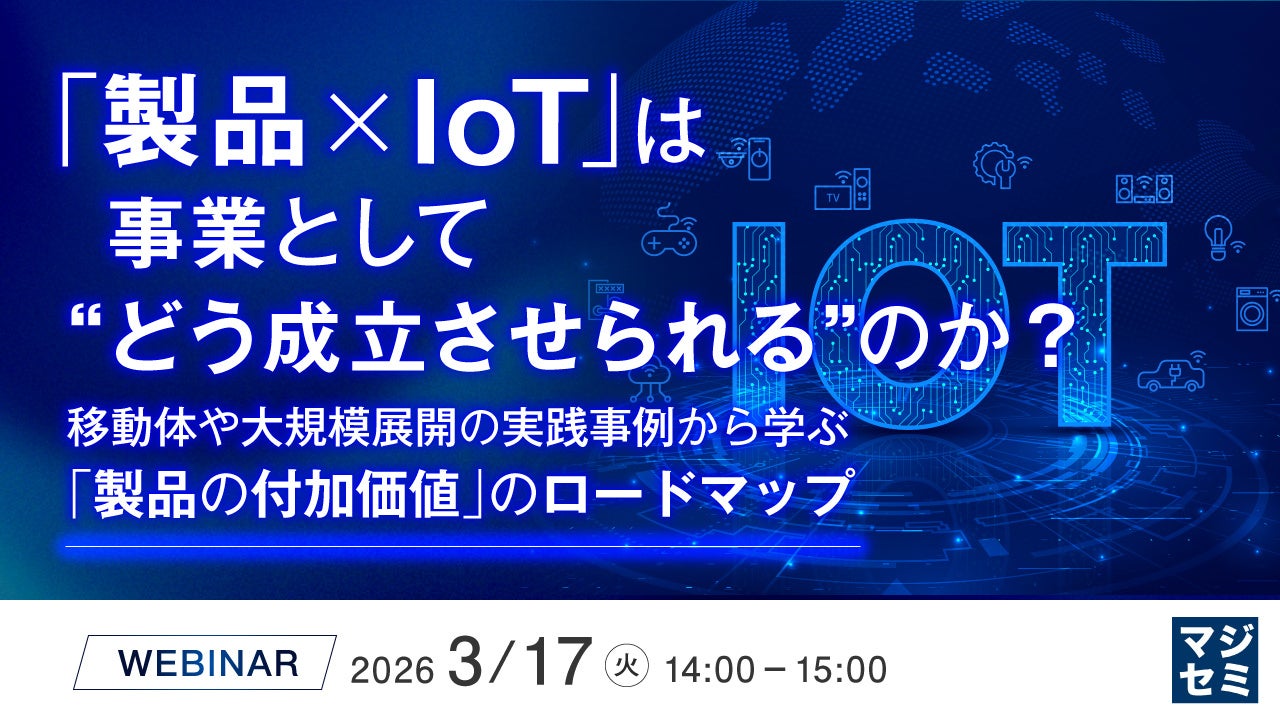 マジセミ株式会社は「「製品×IoT」は事業として“どう成立させられる”のか?」というテーマのウェビナーを開催します。
