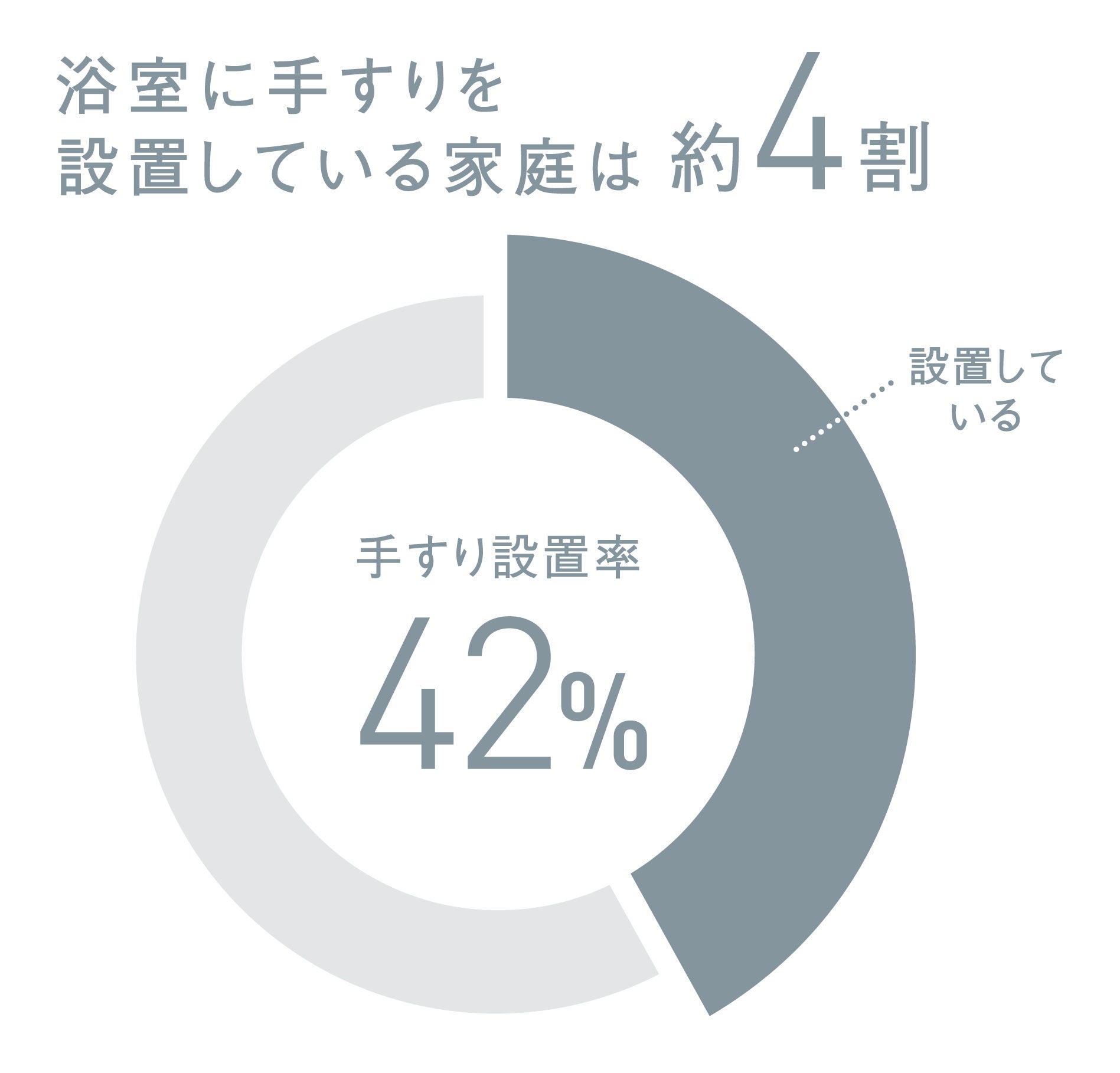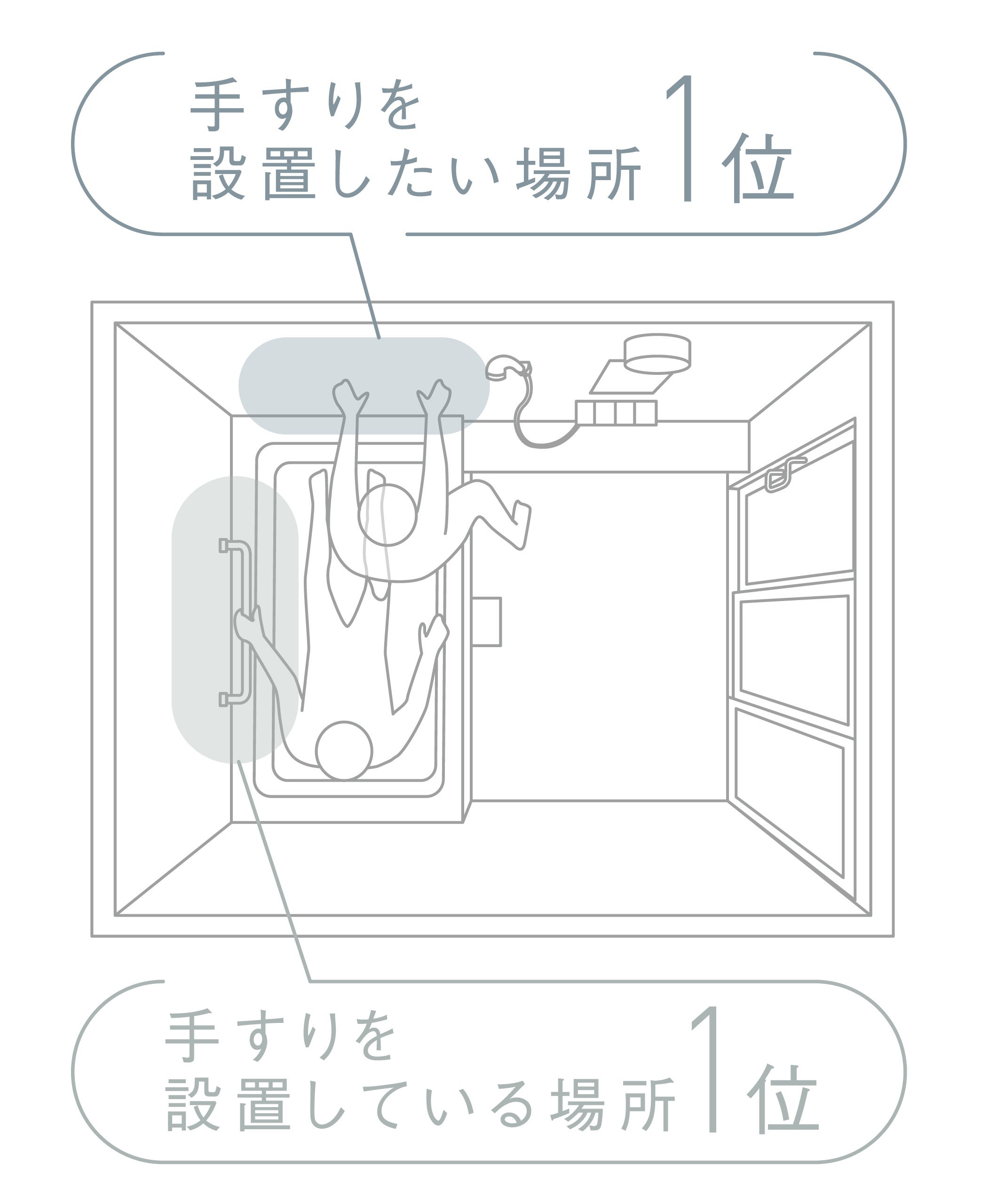 近年、バリアフリー化の流れで浴室手すりの設置が増えているものの設置率は約4割にとどまります(※1)。また、パナソニック ハウジングソリューションズの調査(※2)で、家庭の浴室に「設置“している”位置」1位と「手すりを設置“したい”位置」1位が異なることが判明しました。設置したい位置のニーズが高いのは、「浴槽への出入りのための位置(55.9%)」であることがわかりました。