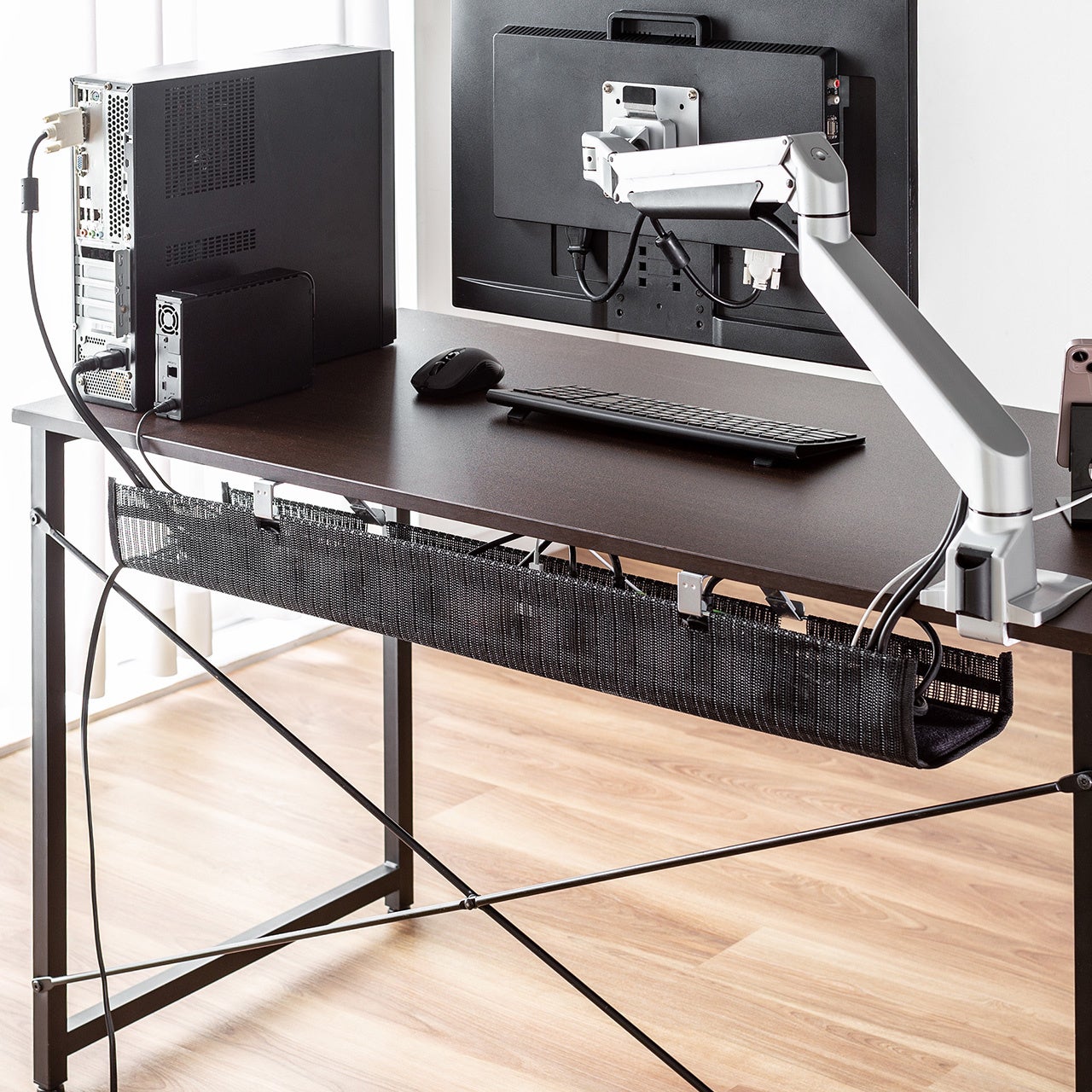 本製品は電源タップとケーブルを一緒に収納できるケーブルトレーです。デスク下のぐちゃぐちゃなケーブルが、本製品を使えばタップごとすっきり整理できます。