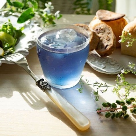 ドリンクに入れるだけで、宝石のようなロイヤルブルーが広がります。